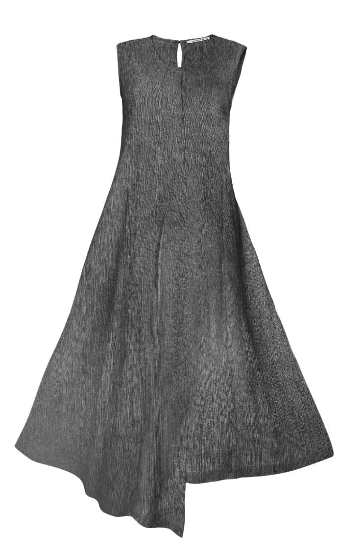 A-Linien-Kleid aus Leinen-Baumwolle mit asymmetrischem Saum