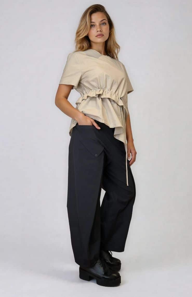 Asymmetrisches Baumwoll-Top mit Kordelzug & Oversize-Passform